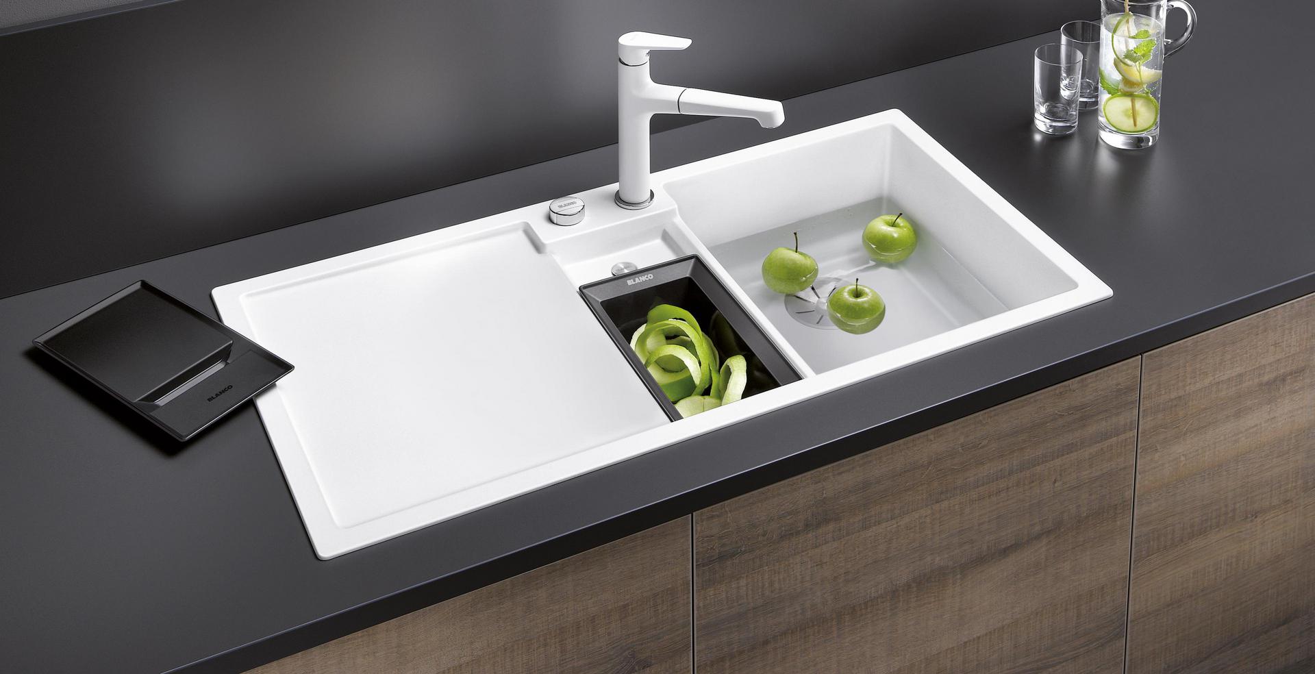 Blanco Collectis 6 S – практичная функциональная мойка с глубокой чашей и системой сбора пищевых отходов. Большая раковина для кухни из материала Silgranit с четкими линиями и удобным разделением отходов - Blanco Collectis предлагает вам новую концепцию для оптимальной организации приготовления пищи. Мойка оснащена дополнительной компактной чашей глубиной 14 см. в центре, в нее идеально помещается входящий в комплект переносной контейнер с крышкой. Это позволяет во время приготовления быстро собирать отходы, накрывать их и временно хранить до тех пор, пока они не будут утилизированы. В сочетании с системой сортировки отходов Blanco Select и Blanco Flexon II эта мойка становится уникальным практичным кухонным помощником. Сортировочный контейнер Collectis идеально совмещается с любой из этих мусорных систем с ведрами объемом 15 или 30 литров. Еще одним преимуществом мойки Blanco Collectis 6 S является дополнительный слив (глубина 26 мм.), который доступен даже тогда когда обе чаши заняты. Эта гранитная мойка продумана до мелочей: основная чаша оборудована современной отводной арматурой InFino и элегантным и гигиеничным переливом C-overflow.